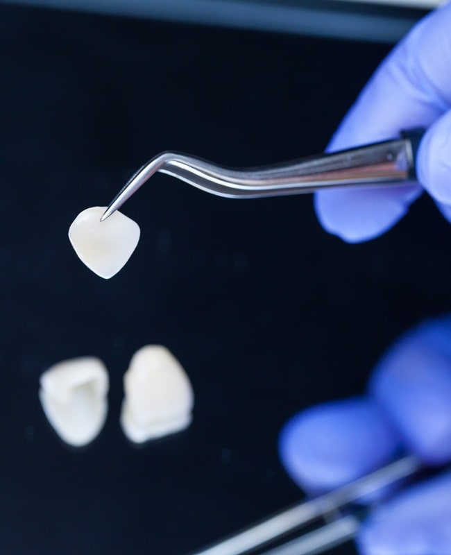 Dental veneers are customized shells that fit over the front of the teeth to improve their appearance. Used on the front teeth, these shells can be bonded directly to the teeth, giving a natural, even look to the smile. Once they are applied, veneers are more resistant to staining, can be cared for easily with at-home tools and techniques, and can last 10 to 15 years with good dental care.